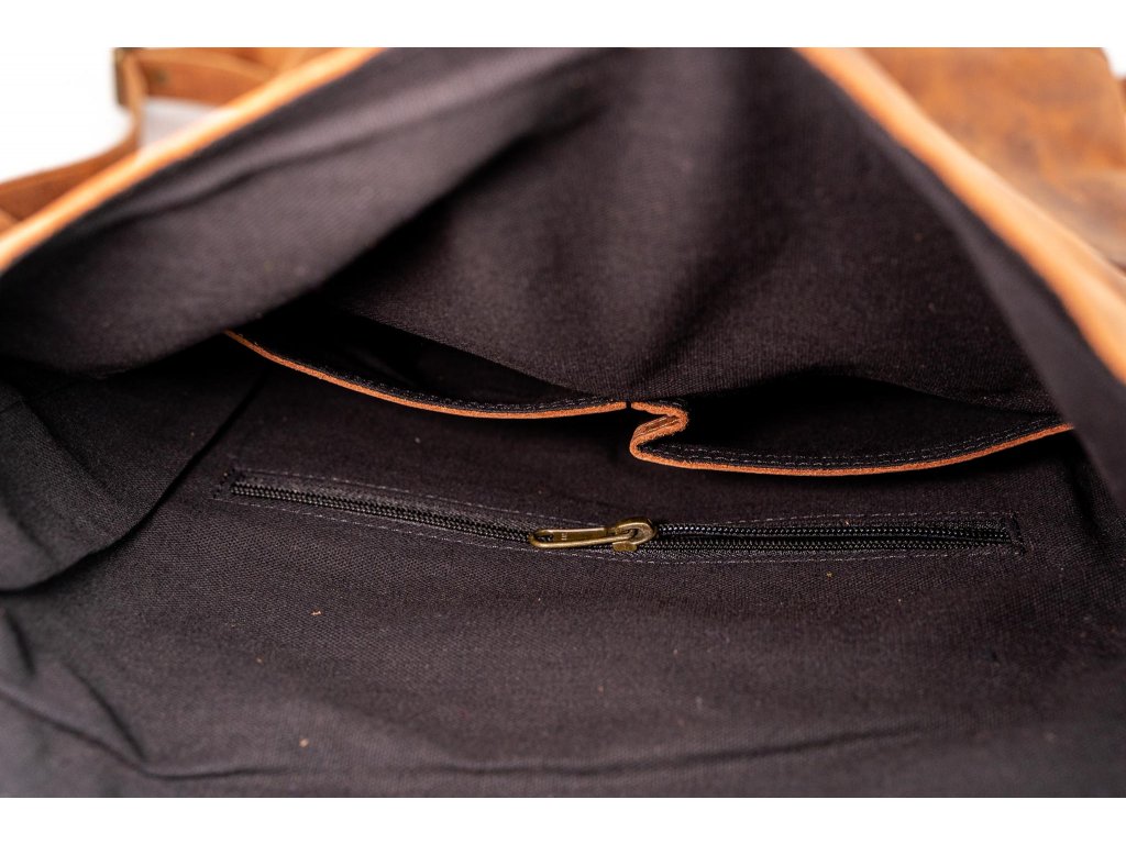 Na zadnej strane batohu sa nachádza zipsom uzatvárateľné vrecko, ktoré poskytuje bezpečné miesto pre cennosti. Vnútorný priestor je podšitý elegantnou čiernou látkou.