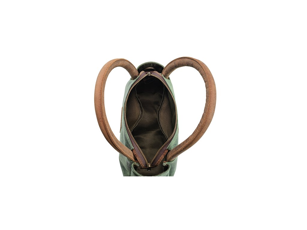 Dámska kabelka Adel v elegantnej kombinácii zelenej a hnedej farby je vyrobená z prvotriednej hovädzej kože, ktorá zaručuje odolnosť a dlhú životnosť.