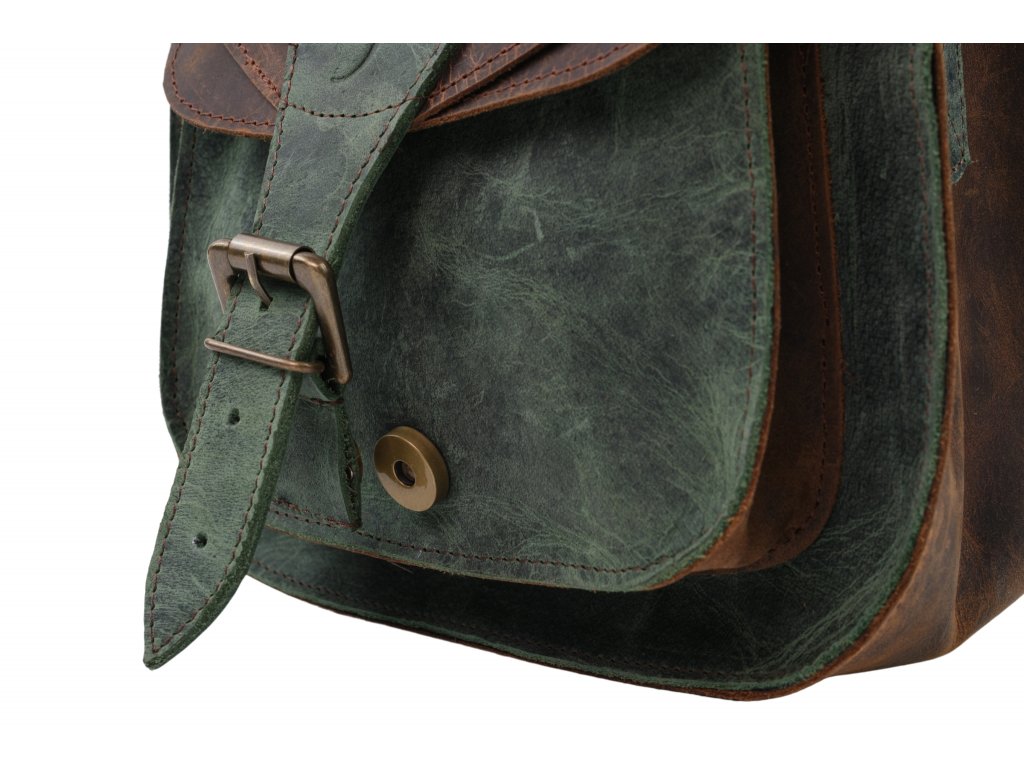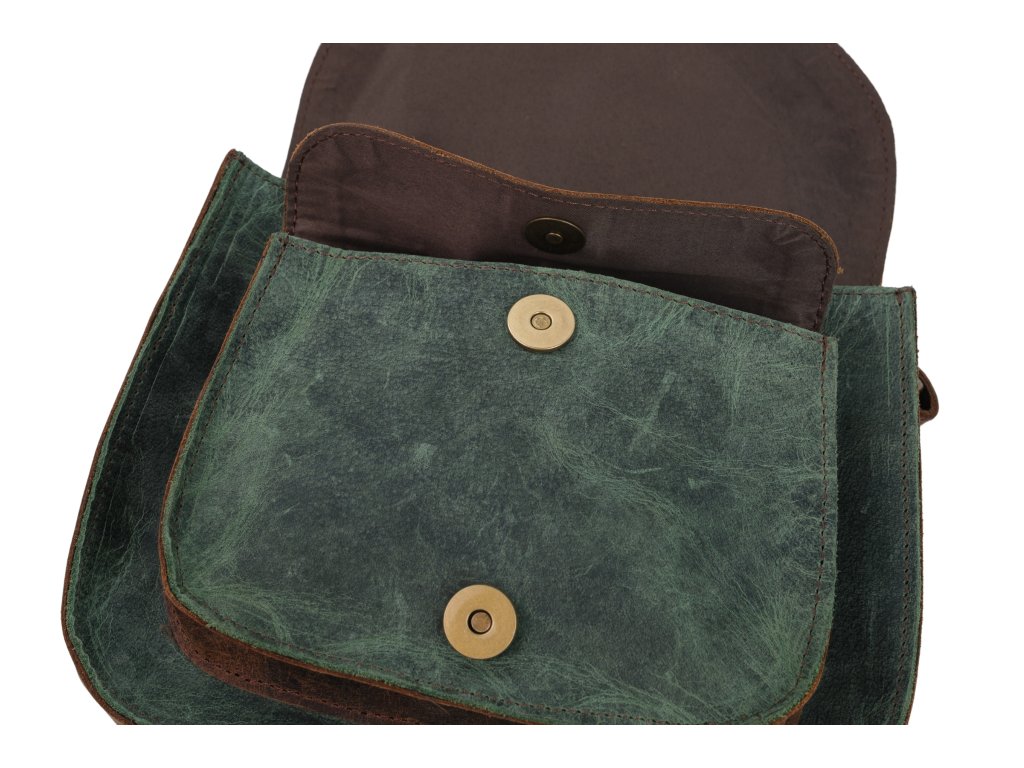 Vonkajšie vrecko s chlopňou a magnetickým zapínaním poskytuje ľahký prístup k drobnostiam. Celú kabelku chráni praktický magnetický uzáver, ktorý štýlovo imituje remienkovú sponu. Nastaviteľný popruh so šiestimi dierkami na úpravu dĺžky zaisťuje maximálny komfort pri nosení.