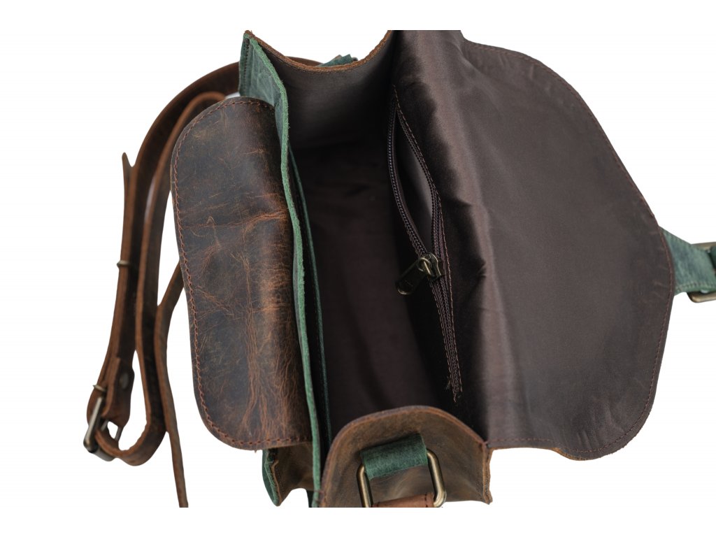 Je ideálny na nosenie cez rameno alebo cross-body, čo umožňuje pohodlné prispôsobenie každodennému štýlu. Vnútorný priestor je navrhnutý s dôrazom na praktickosť – hlavná komora poskytuje dostatok miesta, zatiaľ čo dve postranné vrecká, z ktorých jedno je uzatvárateľné zipsom, umožňujú bezpečné uloženie cenností. Hnedá podšívka dodáva kabelke jemný kontrast a podčiarkuje jej luxusný vzhľad.