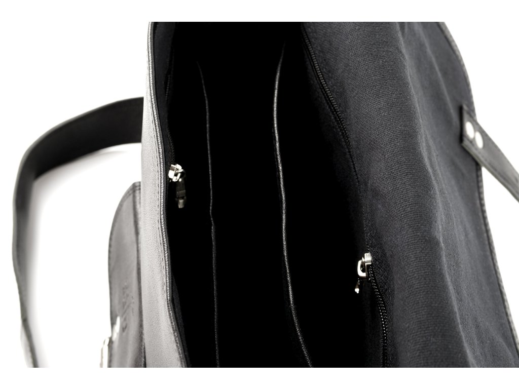 Vnútorný priestor je podšitý čiernou látkou. Do tašky sa bez problému vojdú dokumenty formátu A4.