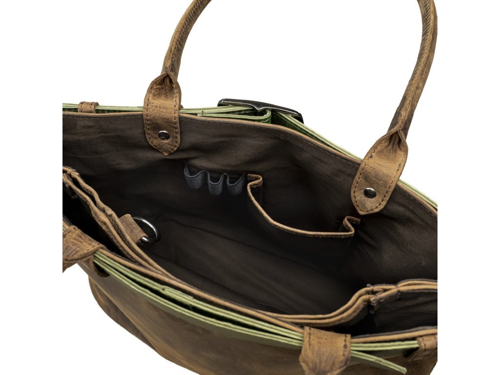 Vo vnútri kabelky ALKA nájdete hlavný priestor s dostatkom miesta pre vaše každodenné potreby – knihu, tablet, peňaženku a dokonca aj malú fľašu. K dispozícii je aj menšie vrecko na drobnosti, ktoré chcete mať oddelené a ľahko dostupné.