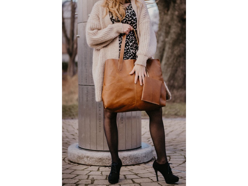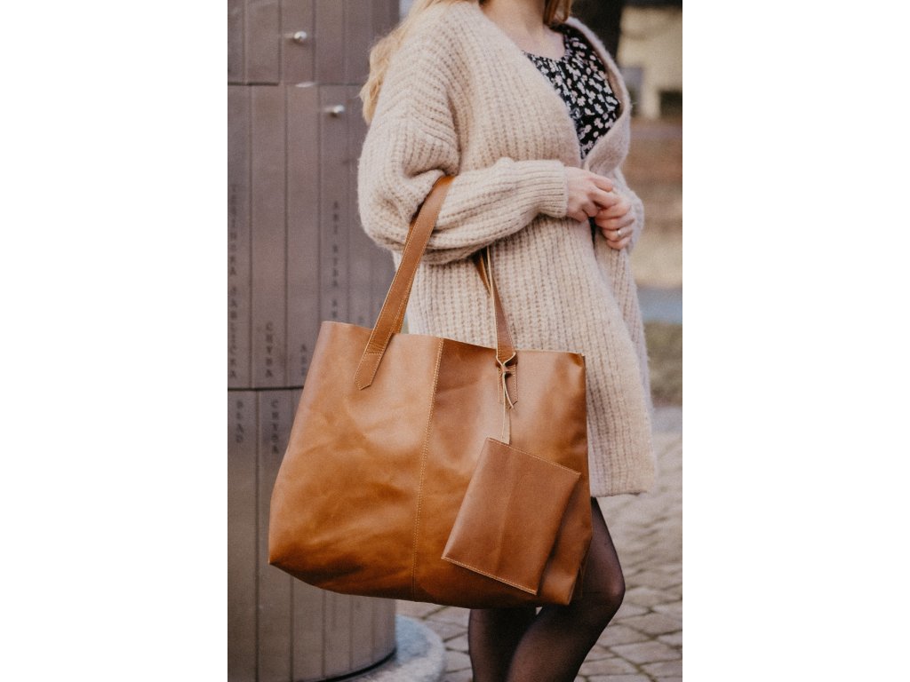 Súčasťou tašky je aj kožená listová kabelka, ktorá dopĺňa jej univerzálnu funkčnosť a dodáva modelu praktický detail.
