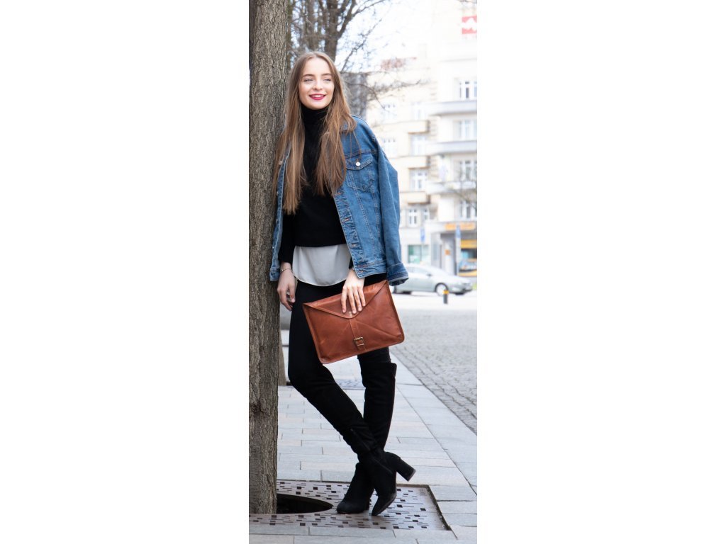 Kompaktný tvar listovej kabelky ponúka dostatok priestoru pre iPad alebo menšie dokumenty, čo zaisťuje jeho praktické využitie. Vďaka variabilnému noseniu ho možno držať v ruke, nosiť cez rameno či cross-body, pričom zadné očká umožňujú upevnenie popruhu, čím zaisťujú maximálnu flexibilitu pri používaní.