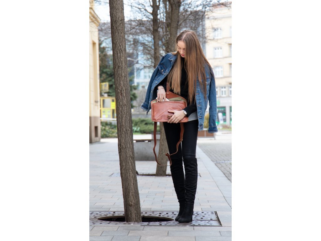 Praktické uzatváranie remienkom poskytuje bezpečné uloženie vašich vecí, zatiaľ čo vnútorný priestor podšitý elegantnou zelenou látkou dodáva taške jedinečný charakter a sofistikovaný vzhľad.