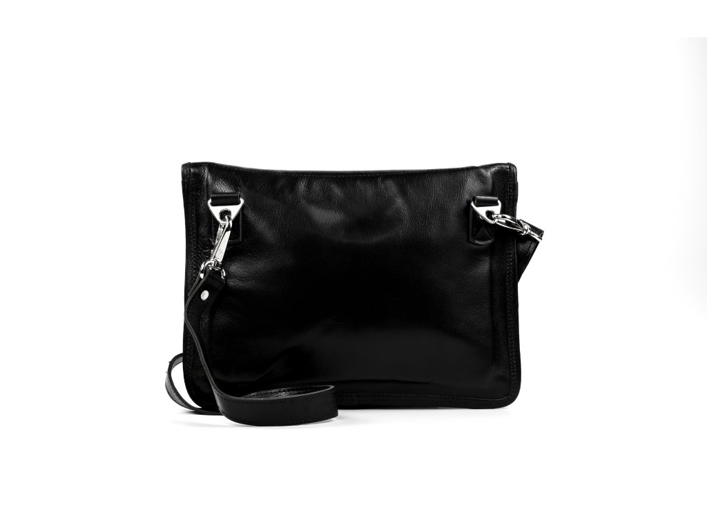 Je možné ju nosiť v ruke, cez rameno alebo cross-body, podľa vášho štýlu a pohodlia. Uzatvára sa remienkom, ktorý dodáva taške sofistikovaný vzhľad. Vnútorný priestor tvorí jedna komora, podšitá čiernou látkou, ktorá chráni obsah a zároveň podčiarkuje luxusné prevedenie. Na zadnej strane sú dve očká na upevnenie popruhu, čo umožňuje variabilný spôsob nosenia.