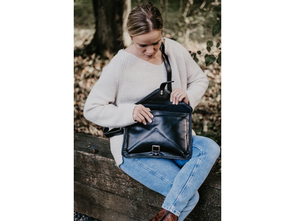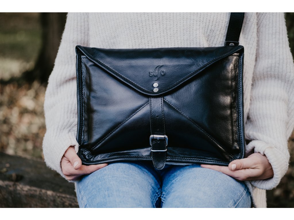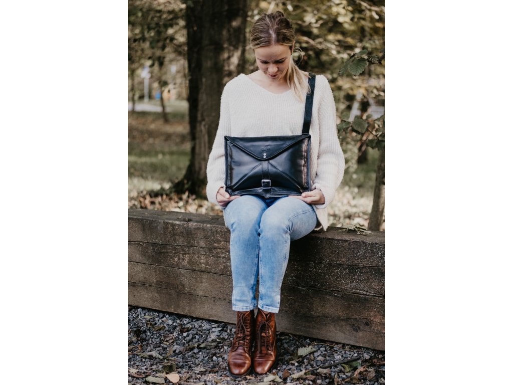 Štýlová taška v tvare listovej kabelky, vyrobená z prvotriednej kozej kože, je dokonalým doplnkom pre každú príležitosť. Vďaka svojim rozmerom je ideálny pre iPad alebo menšie dokumenty, pričom jej minimalistický dizajn podčiarkuje nadčasovú eleganciu.